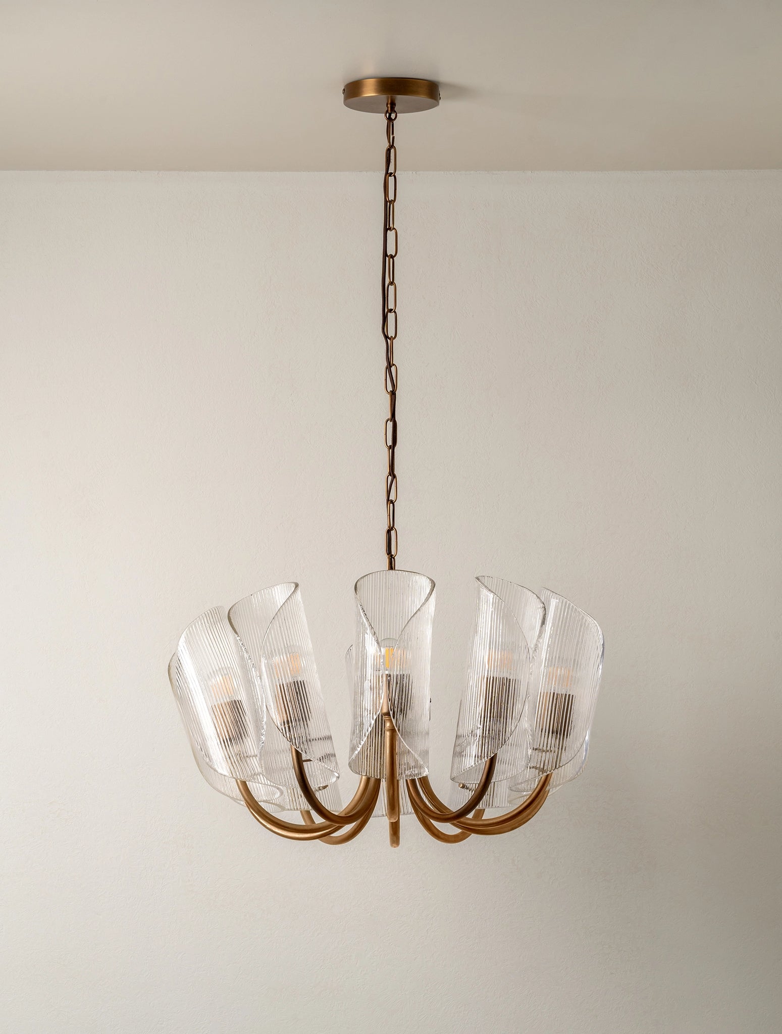 Cannoli - 10 light aged brass and textured glass chandelier