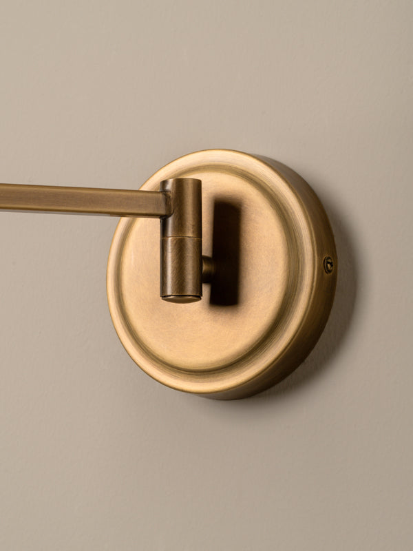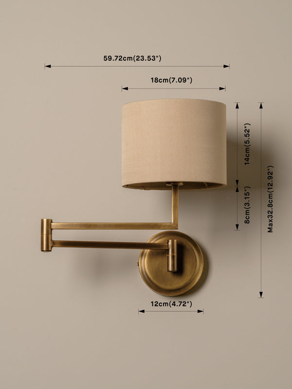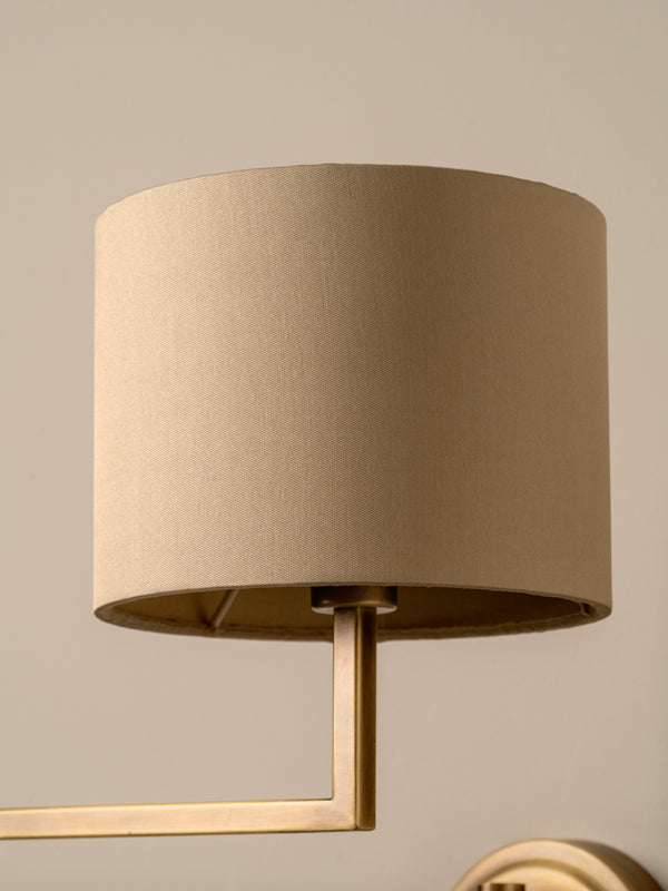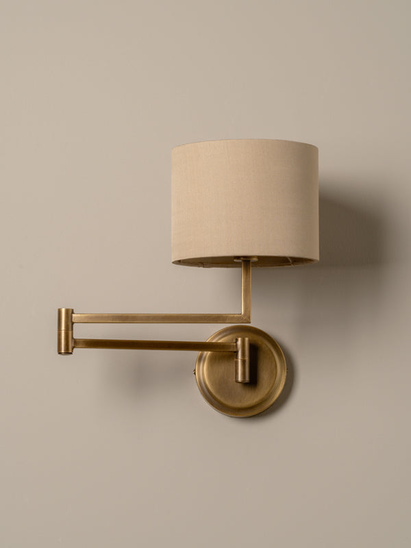 | Simple yet practical. Our square guage swing arm wall light has been elevated by our signature rich bronze finish and a golden sage silk slub shade. A classy companion to any working corner or bedside reading nook. |