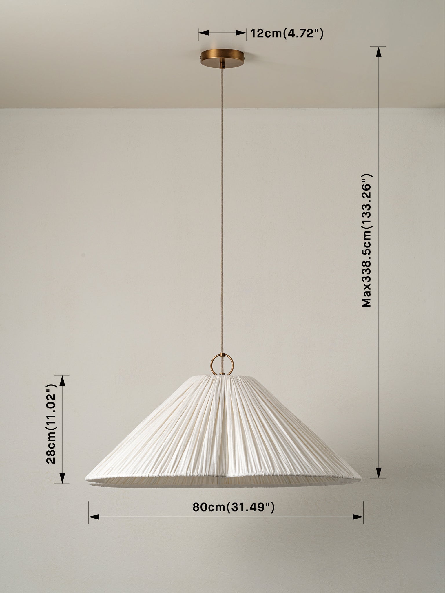 Lindi - aged brass and linen oversized scalloped pendant