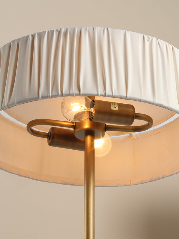 | The Sloane lamp should be enjoyed with an Old Fashioned and Smooth Jazz! Whilst obviously a lamp for a lounge, its small footprint and wide shallow shade makes it a perfect desk partner or bedside companion. The aged brass stepped square base is fitted with a knurled rotary dimmer. Atop the aged brass stem sits a shallow pleated shade in a warm cream with top disk diffuser and square finial. Its a two light so bright enough for a task lamp but dimmable for those moody evenings sitting back and tapping your toes. |